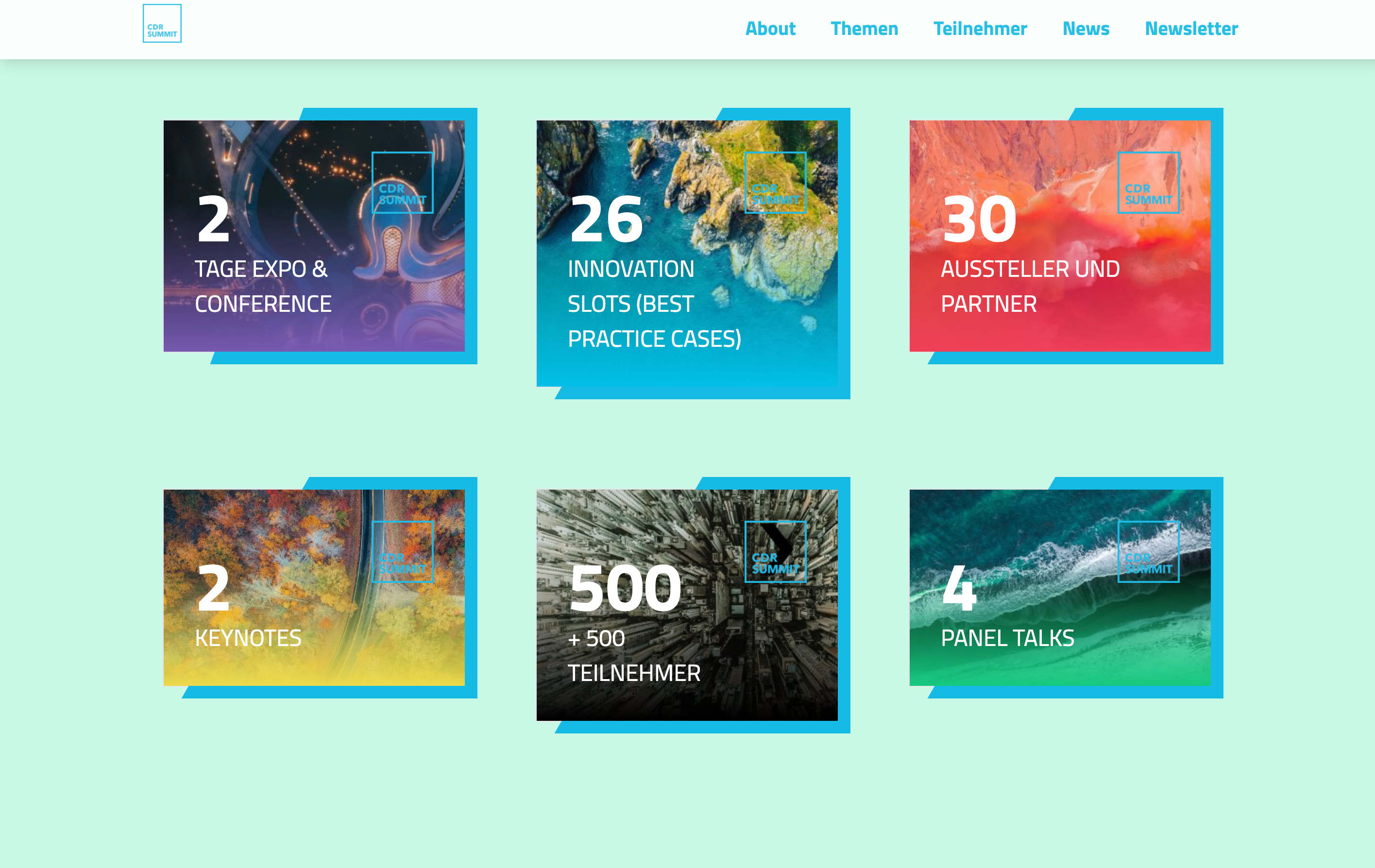 Marketing site for the CDR Summit expo. Development consulting with the digital expo platform Liveline Connect.