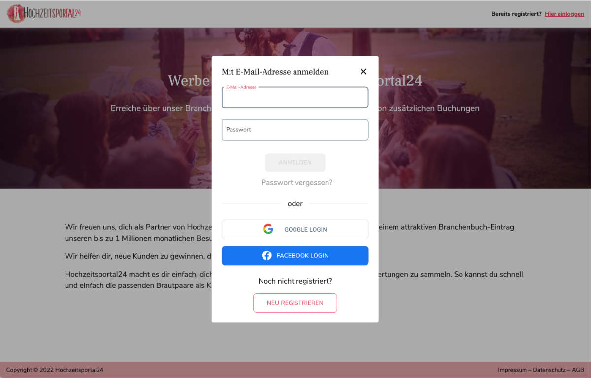Complete re-design and relaunch of the largest German wedding portal - Hochzeitsportal24.