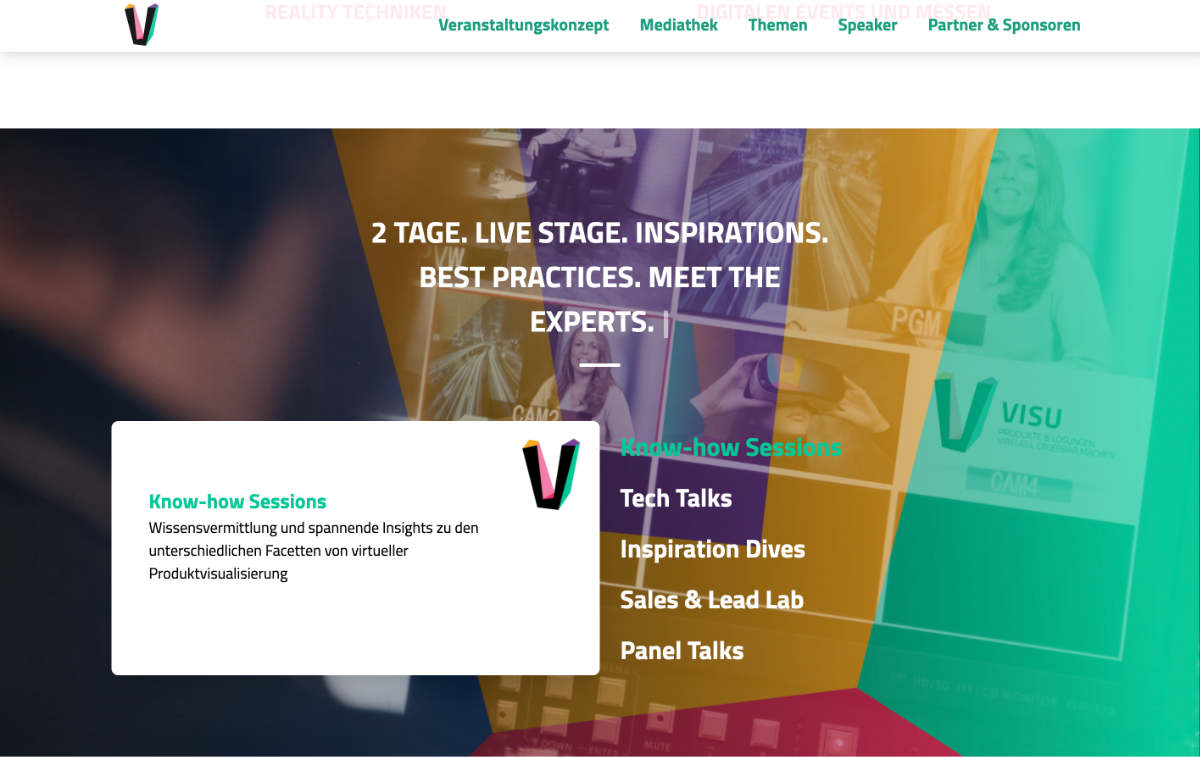 Marketing site for the Visu expo. Development consulting with the digital expo platform Liveline Connect.